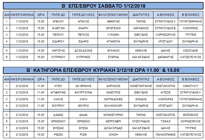 Δείτε αναλυτικά τους διαιτητές που όρισε η Επιτροπή Διαιτησίας της ΕΠΣ Έβρου για το Σαββατοκύριακο στα πρωταθλήματα Α΄- Β΄Κατηγορίας και Κ14-Κ16: