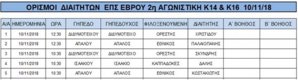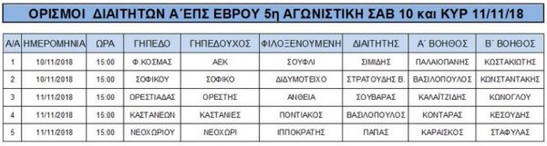 Δείτε αναλυτικά τους διαιτητές που όρισε η Επιτροπή Διαιτησίας της ΕΠΣ Έβρου για το Σαββατοκύριακο στα πρωταθλήματα Α΄- Β΄Κατηγορίας και Κ14-Κ16: