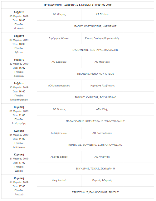 Α’ Κατηγορία 16η Αγωνιστική πρωταθλήματος «ΣΕΡΚΕΛΙΔΟΥ Ορθοπεδικά – Ιατρικά»