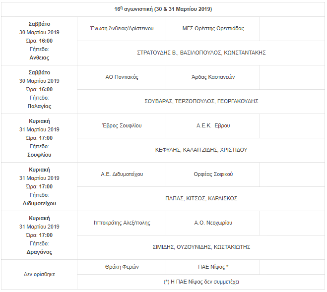 Β’ Κατηγορία Νότιος Όμιλος 16η Αγωνιστική Πρωταθλήματος «ΣΕΡΚΕΛΙΔΟΥ Ορθοπεδικά – Ιατρικά»
