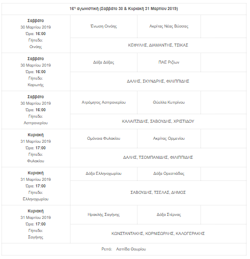 Α’ Κατηγορία 16η Αγωνιστική πρωταθλήματος «ΣΕΡΚΕΛΙΔΟΥ Ορθοπεδικά – Ιατρικά»