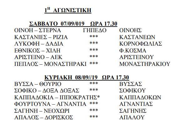 ΕΠΣ Έβρου: Πρόγραμμα Κύπελλο (Α Φάση/1η Αγωνιστική)