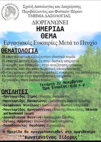 “Εργασιακές ευκαιρίες μετά το πτυχίο”: Ημερίδα του Τμήματος Δασολογίας