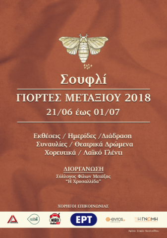 Οι Γιορτές Μεταξιού 2018 επιστρέφουν στο Σουφλί από τις 21 Ιουνίου εώς τις 1 Ιουλίου με την διοργάνωση του Συλλόγου Φίλων της Μετάξης «Η Χρυσαλλίδα».