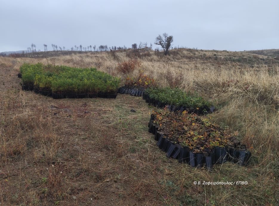 - Τον Ιούλιο 2024, η Γενική Διεύθυνση Δασών και Δασικού περιβάλλοντος του ΥΠΕΝ ανακήρυξε ανάδοχο αποκατάστασης και αναδάσωσης της περιοχής που σχεδιάζεται ο αιολικός σταθμός την Εταιρεία Προστασίας Βιοποικιλότητας της Θράκης, η οποία, βάσει εγκεκριμένης μελέτης, υλοποιεί την αναδάσωση με ιδίους πόρους. Το έργο ξεκίνησε το 2024 και θα ολοκληρωθεί το 2027, πραγματοποιώντας φυτεύσεις δέντρων σε μια έκταση 1146 στρεμμάτων. Από τον Δεκέμβριο του 2024 έως τον Φεβρουάριο του 2025 φυτεύτηκαν συνολικά 47.946 δέντρα, επιδιώκοντας τη δημιουργία ενός «ψηλού δάσους» στο μέλλον, με μίξη διαφορετικών ειδών δέντρων (δρύες, πεύκα, γαύροι, φράξοι, σφενδάμια και αγριοκερασιές), που θα συμβάλει στις παράλληλες δράσεις αποκατάστασης των καμένων περιοχών, στη μακροπρόθεσμη ανθεκτικότητα των δασικών οικοσυστημάτων και στη διατήρηση των σπάνιων αρπακτικών πουλιών της περιοχής.