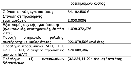 Αξίζει να αναφερθεί ότι στην γνωμοδότηση της Συγκλήτου του Δημοκρίτειου Πανεπιστήμιου Θράκης υπάρχει και κοστολόγηση για την Ίδρυση του Τμήματος η οποία προβλέπει μόνο για τη στέγαση της σε νέες εγκαταστάσεις επένδυση ύψους 34 εκ. ευρώ. Αναλυτικά: