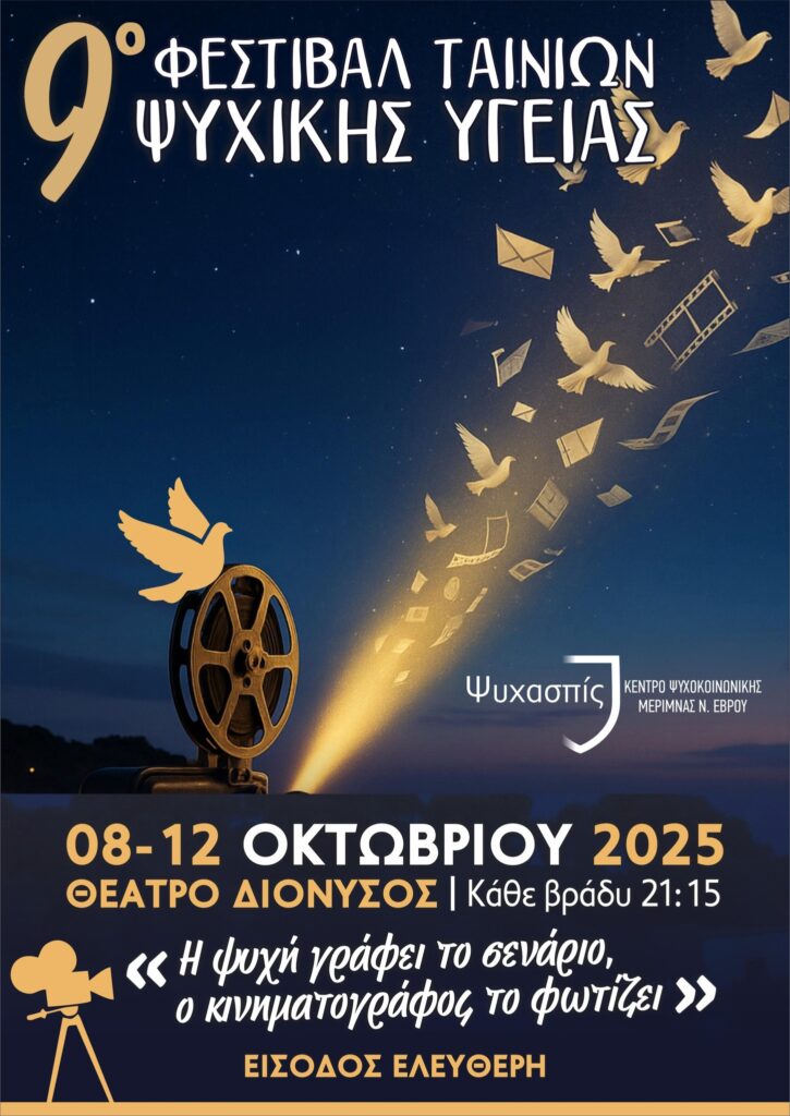 Η Ψυχασπίς, με αφορμή την Παγκόσμια Ημέρα Ψυχικής Υγείας (10 Οκτωβρίου 2025), διοργανώνει το Φεστιβάλ Κινηματογράφου Ψυχικής Υγείας,μια γιορτή τέχνης και διαλόγου αφιερωμένη στην ευαισθητοποίηση, την αποδοχή και την ενδυνάμωση γύρω από ζητήματα ψυχικής υγείας.