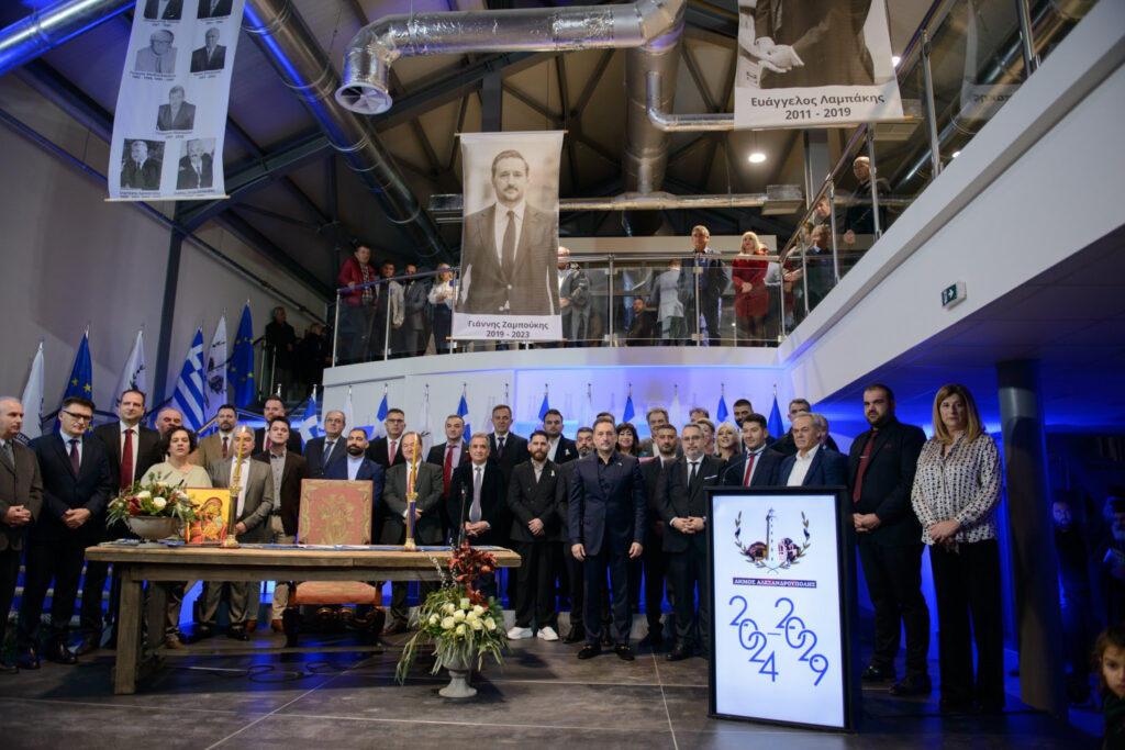 Στην κατάμεστη, προσφάτως ανακαινισμένη αποθήκη νο2 στο λιμάνι Αλεξανδρούπολης, πραγματοποιήθηκε το Σάββατο 16 Δεκεμβρίου 2023 η ορκωμοσία του Δημάρχου, των τακτικών μελών του Δημοτικού Συμβουλίου και των Προέδρων και Συμβούλων των Δημοτικών κοινοτήτων του Δήμου Αλεξανδρούπολης, παρουσία του Σεβασμιοτάτου Μητροπολίτη Αλεξανδρουπόλεως, Τραϊανουπολεως και Σαμοθράκης κ. Ανθίμου, θεσμικών φορέων, αρχών και πλήθους κόσμου.