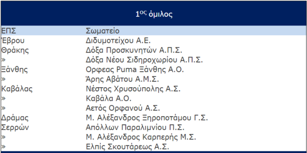 Δείτε αναλυτικά τις ομάδες που απαρτίζουν τον πρώτο όμιλο: