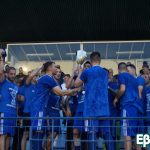 Ο Ορέστης Ορεστιάδας μετά το παιχνίδι της 22ης και τελευταίας αγωνιστικής του πρωταθλήματος “Σερκελίδου” της Α΄Κατηγορίας της ΕΠΣ Έβρου στο οποίο υποδέχθηκε χθες τον Έβρο Σουφλίου (δείτε εδώ αναλυτικό ρεπορτάζ) πανηγύρισε την κατάκτηση του πρωταθλήματος που ταυτόχρονα σημαίνει και άνοδο στην Γ΄ Εθνική κατηγορία. Η γιορτή στήθηκε από νωρίς με αρκετό κόσμο στο γήπεδο! Μετά την λήξη του παιχνιδιού έγινε η απονομή με τον αρχηγό της ομάδας Σ. Πετρόπουλο να σηκώνει στον ουρανό την κούπα του πρωταθλητή για τους Μπλε του Μυλωνά εν μέσω έξαλλων πανηγυρισμών από συμπαίκτες,προπονητές διοίκηση και φιλάθλους !