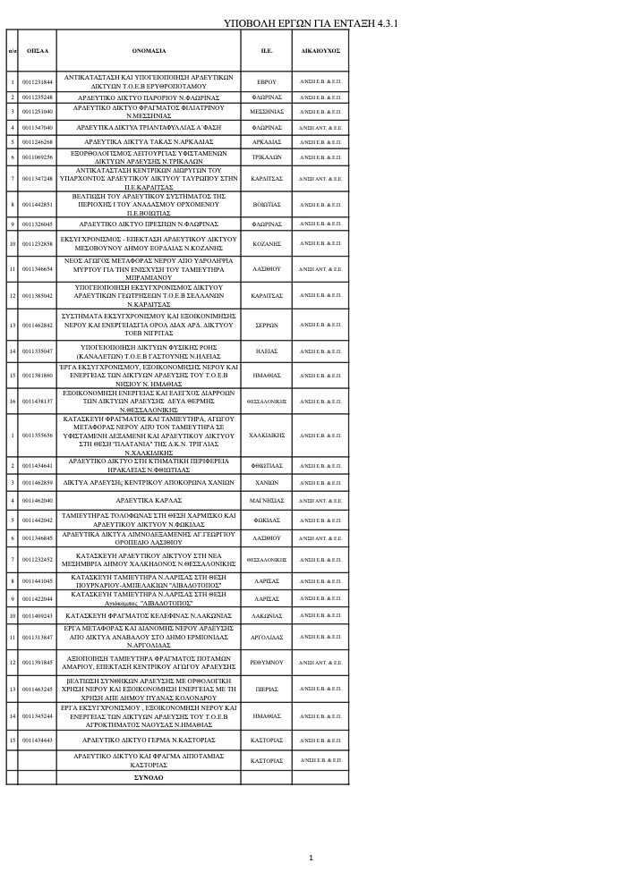 Η λίστα με τα 32 αρδευτικά έργα του υπουργείου Αγροτικής Ανάπτυξης