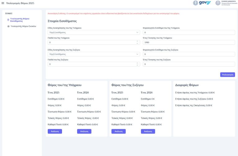 Σε μερικά δευτερόλεπτα, κάθε πολίτης μπορεί να διαπιστώσει με σχετική ακρίβεια τις μειώσεις στη φορολογία που θα ισχύσουν από το 2026. Για τους μισθωτούς, οι μειώσεις αυτές ισοδυναμούν με αυξήσεις μισθών από τον Ιανουάριο της νέας χρονιάς, ενώ για τους ελεύθερους επαγγελματίες το όφελος θα αποτυπωθεί το 2027.