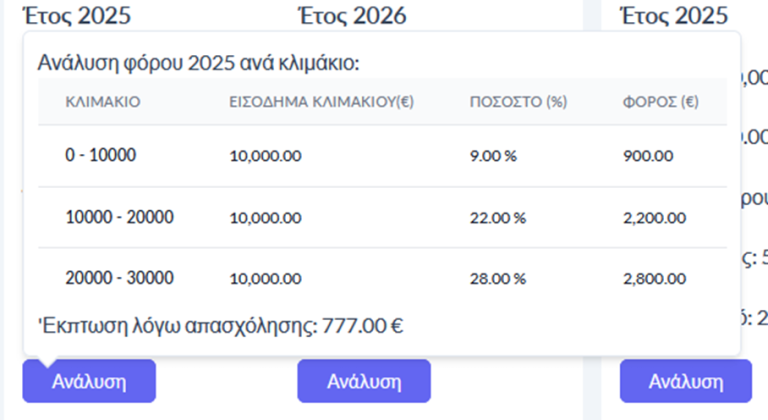 Οθόνη 3: Ανάλυση Κλιμακίων Φόρου Εισοδήματος