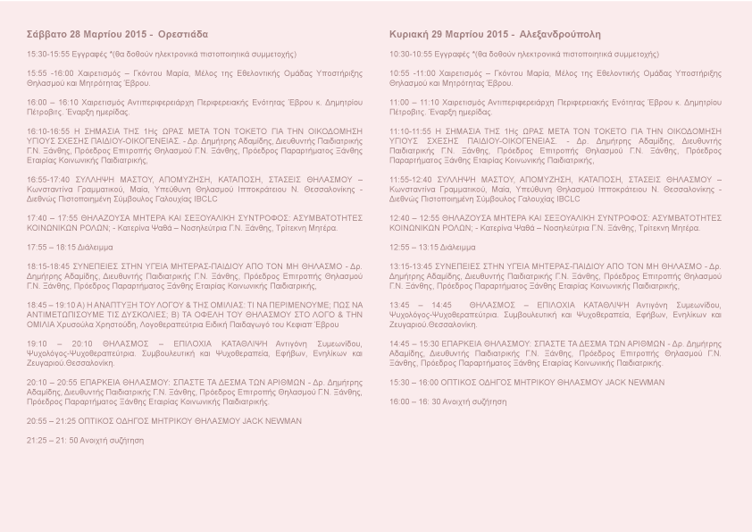 Η Περιφερειακή Ενότητα Έβρου σε συνεργασία με την Εθελοντική Ομάδα Υποστήριξης Μητρικού Θηλασμού και Μητρότητας Έβρου, διοργανώνουν την 1η Ημερίδα Μητρικού Θηλασμού για Γονείς και Επαγγελματίες Υγείας, στο Πολιτιστικό Πολύκεντρο Ορεστιάδας, το Σάββατο 28 Μαρτίου 2015, στις 16.00, και στο Επιμελητήριο Αλεξανδρούπολης, την Κυριακή 29 Μαρτίου 2015, στις 11.00.