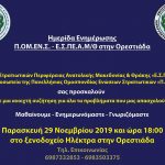 Η Ημερίδα Ενημέρωσης θα πραγματοποιηθεί την Παρασκευή 29 Νοεμβρίου 2019 και ώρα 18:00 στο ξενοδοχείο “Ηλέκτρα”.