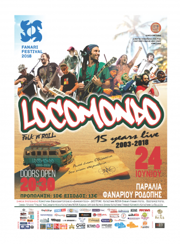 Το live των Locomondo είναι μία μεγάλη γιορτή! Ξέφρενοι ρυθμοί, πάρτυ, παραλίες, χορός, τραγούδι και καλοκαίρι είναι λίγες απ τις λέξεις που σου έρχονται στο μυαλό στο άκουσμα των Locomondo!!! Η μουσική που τους ανέδειξε είναι μία μίξη από Reggae, Ska, Latin, rock και ελληνικών παραδοσιακών ρυθμών. Τους ελληνικούς στίχους υπογράφει ο Μάρκος Κούμαρης. Με τραγούδια όπως “Δεν κάνει κρύο στην Ελλάδα”, “Μαγικό χαλί” και με “ rap, ska, reggae, hip-hop, dub, ska, reggae, one drop”,”80’s” το μόνο σίγουρο είναι πως δεν θα σταματήσουμε να χορεύουμε!!!
