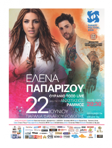Ένα super live πρόγραμμα 2μιση ωρών, με πολλές και διαφορετικές καλλιτεχνικές αποχρώσεις της No1 Diva της Pop. Η Έλενα Παπαρίζου, η μεγαλύτερη Ελληνίδα Pop Star, λαμπερή πάντα, δυναμική, αυθεντική και με μοναδική σκηνική παρουσία καταφέρνει κάθε φορά που βρίσκεται στην σκηνή να κερδίζει το κοινό και να αφήνει τις καλύτερες εντυπώσεις με ένα εκρηκτικό show. Για ακόμα ένα καλοκαίρι η Έλενα Παπαρίζου ετοιμάζεται για μια μεγάλη περιοδεία σε Ελλάδα και Κύπρο, έχοντας φέτος στο πλευρό της τον ανερχόμενο Αναστάσιο Ράμμο. Τραγούδια από τον τελευταίο της δίσκο «Ουράνιο Τόξο», μεγάλες και διαχρονικές μπαλάντες όπως το «Υπάρχει Λόγος», ανατρεπτικές διασκευές, super ανεβαστικές επιτυχίες όπως τα «Mambo» και «Fiesta» αλλά και μια δυνατή και ανατρεπτική σύμπραξη επί σκηνής με τον Αναστάσιο Ράμμο, σε συνδυασμό με εντυπωσιακά χορευτικά και όλα μαζί δημιουργούν την πιο φρέσκια, δροσερή και απόλυτη μουσική επιλογή διασκέδασης του φετινού καλοκαιριού!