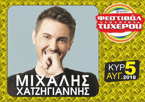 Ο δημοφιλής καλλιτέχνης επιστρέφει φέτος στο Τυχερό και στην σκηνή του Φεστιβάλ την Κυριακή 5 Αυγούστου 2018 για να ερμηνεύσει παλιές και νέες επιτυχίες σε ένα ξέφρενο πάρτι με τις μεγάλες του επιτυχίες.Ένας απολαυστικός και μοναδικός Μιχάλης Χατζηγιάννης με τα πιο γνωστά και τρυφερά τραγούδια που όλοι έχουμε αγαπήσει αναμένεται να μας χαρίσει πολλές μελωδικές όμορφες στιγμές και έντονη διάθεση για «το καλοκαίρι μας». Ο καλλιτέχνης είχε βρεθεί στο Τυχερό πριν 13 χρόνια, στις 14 Αυγούστου 2005.