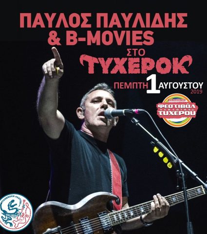 Το Τυχερόκ επιστρέφει δυναμικά με την καλύτερη έναρξη για το φετινό 4ήμερο φεστιβάλ! Ο Παύλος Παυλίδης & οι B-Movies μας επιφυλάσσουν μια μοναδική καλοκαιρινή συναυλία με μοναδικά τραγούδια και επιτυχίες των τελευταίων χρόνων. Θα έχουμε την ευκαιρία να ακούσουμε live με κάποια κομμάτια τους και τραγούδια που έχουν ήδη γίνει γνωστά από το καινούριο τους υλικό. Το κοινό και μία αναδρομή σε όλη τη μουσική πορεία του Παύλου Παυλίδη τόσο από την αξέχαστη εποχή των Ξύλινων Σπαθιών όσο και από τη μετέπειτα δισκογραφία του. Η βραδιά που επιστρέφει το Ticherock που θα μείνει σίγουρα αξέχαστη!