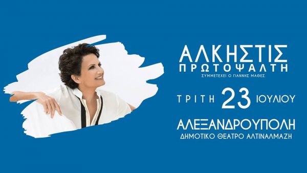 Η Άλκηστις Πρωτοψάλτη, μετά από έναν δυνατό καλλιτεχνικό χειμώνα στη μουσική σκηνή του Gazarte -με τρεις συνεχόμενες παρατάσεις και διθυραμβικές κριτικές- θα ταξιδέψει το καλοκαίρι σε πόλεις της Ελλάδας συνεχίζοντας τη μεγάλη επιτυχία!