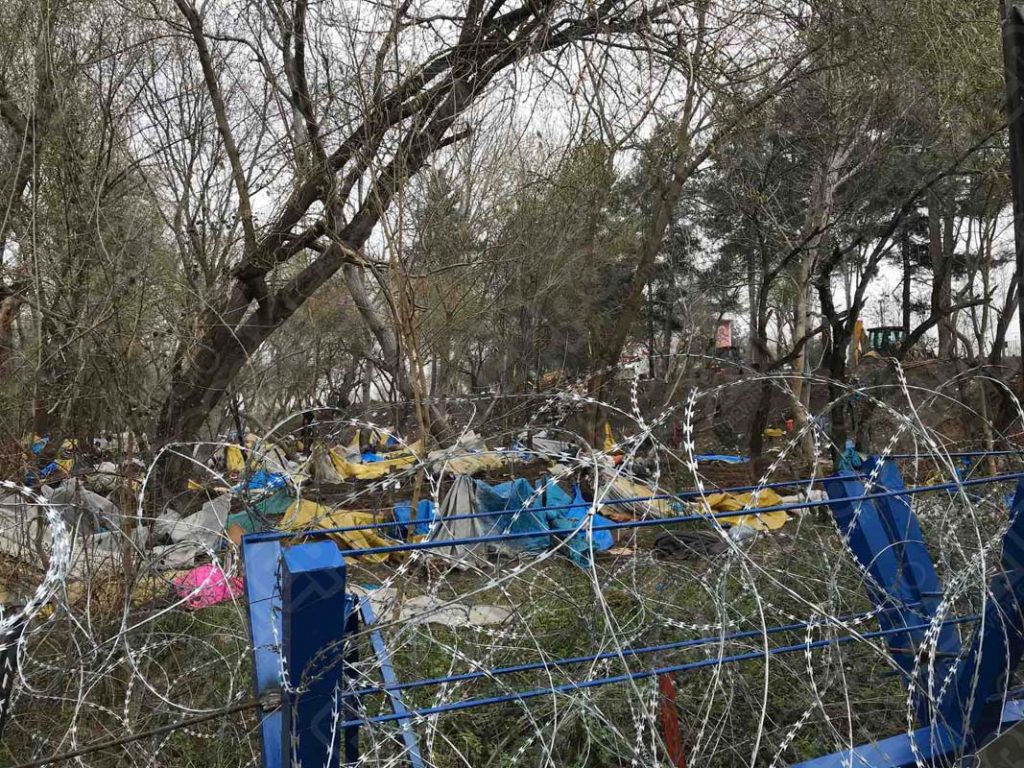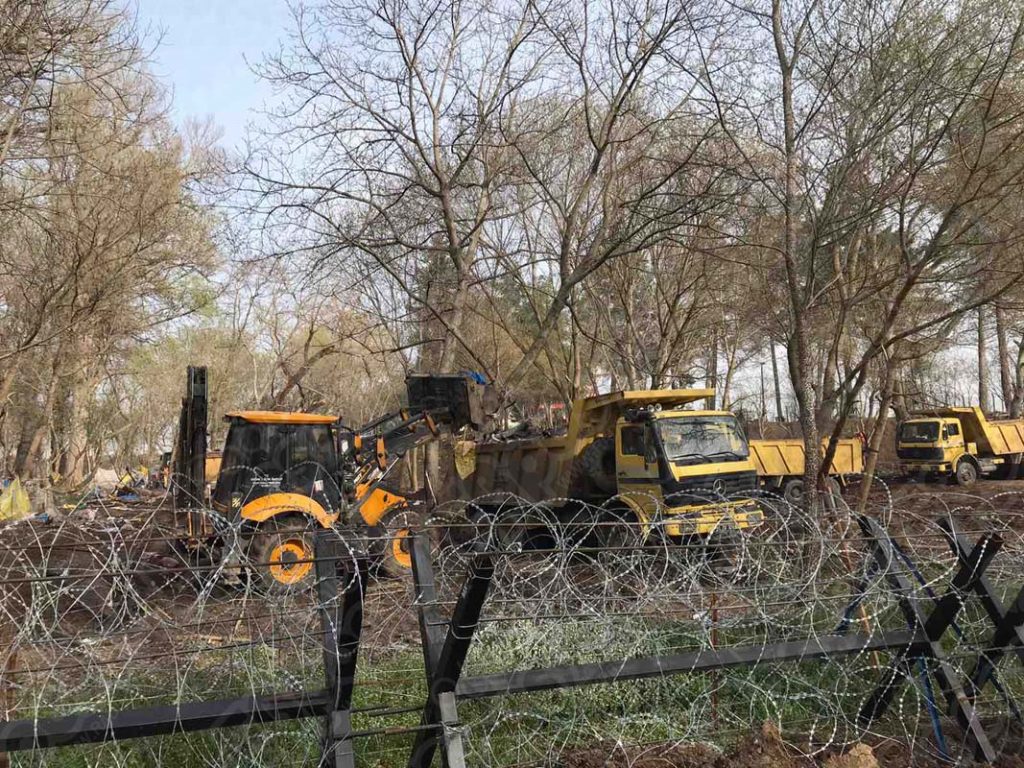 Από την τουρκική πλευρά έχουν επιστρατευθεί βαριά χωματουργικά μηχανήματα για να μαζέψουν το σωρό από αποκαΐδια των υπαρχόντων αυτών που τις τελευταίες 28 ημέρες είχαν κατασκηνώσει στο άλσος που μοιράζονται οι δύο χώρες και από την Ελληνική γίνεται μια καταγραφή των ζημιών που προκλήθηκαν από τα αναρίθμητα επεισόδια που σημειώθηκαν.