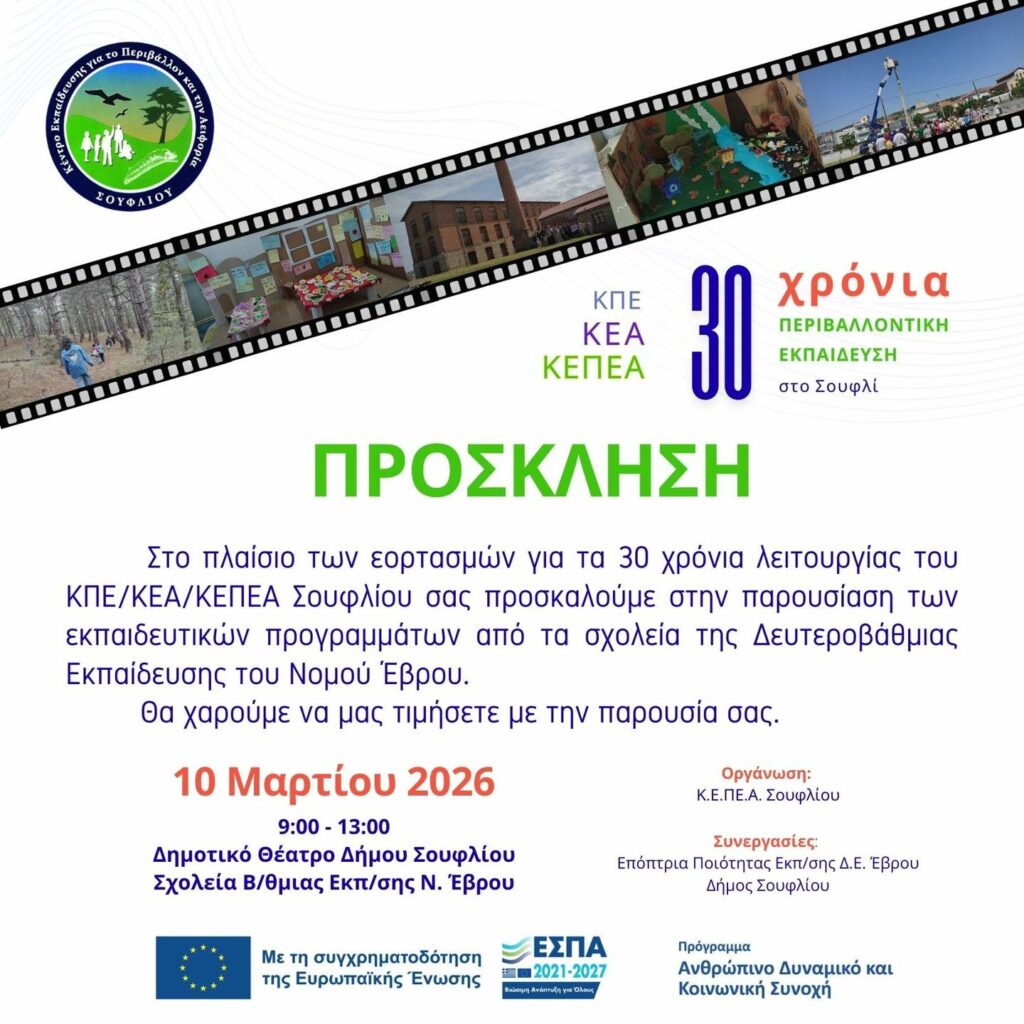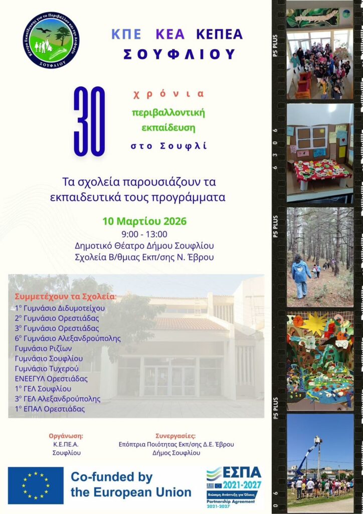 ΚΕΠΕΑ Σουφλίου: Εκδήλωση για τα 30 χρόνια Περιβαλλοντικής Εκπαίδευσης στο Σουφλί
