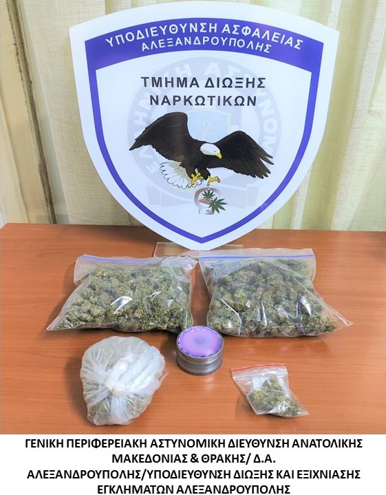 Συνελήφθησαν 28-3-2025 στην Αλεξανδρούπολη, από αστυνομικούς του Τμήματος Δίωξης Ναρκωτικών της Υποδιεύθυνσης Δίωξης και Εξιχνίασης Εγκλημάτων Αλεξανδρούπολης δύο ημεδαποί, σε βάρος των οποίων σχηματίσθηκαν ξεχωριστές δικογραφίες για παράβαση της νομοθεσίας περί εξαρτησιογόνων ουσιών.