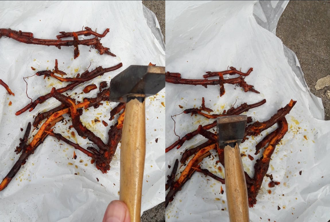 Στην συνέχεια τις χτυπάς και τις βάζεις να βράσουν και σ’ αυτό το κόκκινο νερό βράζεις τα αυγά την Μεγάλη Πέμπτη.
