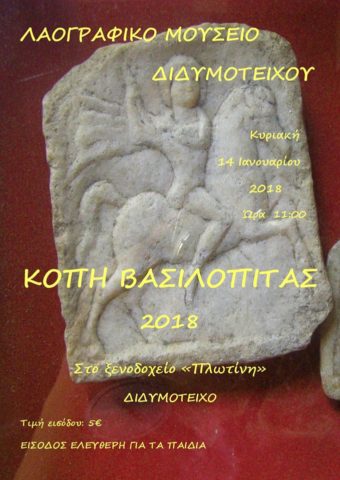 Η Πρόεδρος και τα Μέλη του Δ.Σ. του Λαογραφικού Μουσείου Διδυμοτείχου σας προσκαλούν στην Κοπή της Βασιλόπιτας.