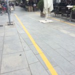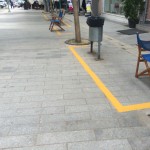 Με μία κίτρινη γραμμή “φιλοτεχνήθηκαν” σήμερα οι πεζόδρομοι Σοφίας Νικολάου και Πρόκου από τις υπηρεσίες του Δήμου προκειμένου να οριοθετηθούν τα όρια των τραπεζοκαθισμάτων που αναπτύσσουν τα καταστήματα μαζικής εστίασης στους εν λόγω πεζοδρόμους.