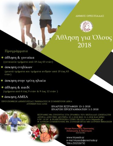 Ξεκινούν τα Προγράμματα Άθλησης για Όλους 2018 του Δήμου Ορεστιάδας