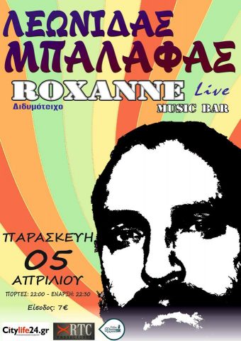 Ο πολυδιάστατος τραγουδοποιός Λεωνίδας Μπαλάφας στο πολυσύχναστο στέκι του Διδυμοτείχου “ROXANNE MUSIC BAR” έρχεται στις 5 Απριλίου παρέα με τα αγωνιστικά πουλάρια καλπάζοντας από το Ταξίδι για να σε βρω μέχρι τον Άνθρωπο μονάχο και λίγο παραπέρα σε ακόμα πιο νέες μουσικές διαδρομές κάνοντας κάποιες στάσεις ανεφοδιασμού για κριθάρι και βρώμη σε παραδοσιακά,καντάδες, λαικά και σε άλλα αγαπημένα τραγούδια και οργανικά για να μας ταξιδέψουν,να μας διασκεδάσουν και να μας ψυχαγωγήσουν.