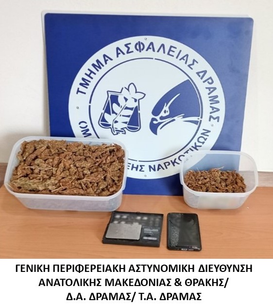 Στην δεύτερη περίπτωση, στις 2-8-2024 το απόγευμα σε περιοχή της Δράμας, αστυνομικοί της Ομάδας Δίωξης Ναρκωτικών του Τμήματος Ασφάλειας Δράμας έπειτα από κατάλληλη αξιοποίηση στοιχείων για διακίνηση ναρκωτικών ουσιών στην ευρύτερη περιοχή της Δράμας, συνέλαβαν έναν ημεδαπό, διότι εντόπισαν στην οικία του και κατάσχεσαν δύο συσκευασίες με ακατέργαστη κάνναβη συνολικού βάρους 482,1 γραμμαρίων, μία ηλεκτρονική ζυγαριά ακριβείας και ένα κινητό τηλέφωνο.