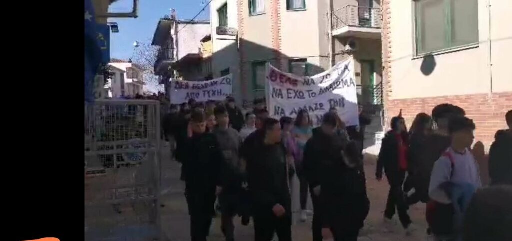 Οι μαθητές, παρότι σήμερα τα σχολεία είναι κλειστά λόγω την πανελλαδικής απεργίας στην οποία συμμετέχουν και καθηγητές, συγκεντρώθηκαν από νωρίς το πρωί στο Διδυμότειχο και πραγματοποίησαν πορεία στους κεντρικούς δρόμους της πόλης κρατώντας πανό και πινακίδες με πολλά συνθήματα: “Φταίει η κακιά η (χ)ώρα”, “Εσείς μετράτε κέρδη και ζημιές εμείς μετράμε ανθρώπινες ζωές”, “Στείλε οτΑΝ φτάσεις”, “Θέλω να ζω για να έχω το δικαίωμα να αλλάξω την τύχη μου”, “Δεν θέλω να ζω από τύχη”.