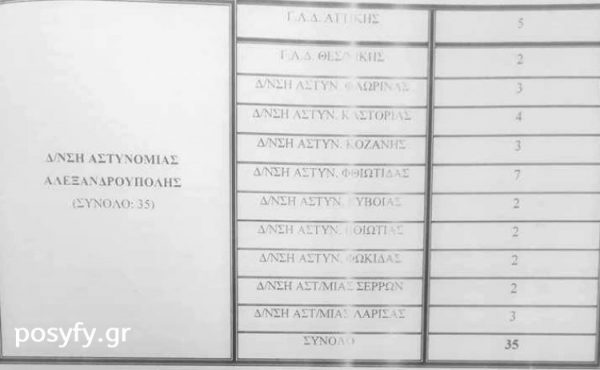 Για την Διεύθυνση Αστυνομίας Αλεξανδρούπολης προβλέπεται ενίσχυση με 35 άτομα ενώ η Διεύθυνση Αστυνομίας Ορεστιάδας ενισχύεται με 120 άτομα το ίδιο χρονικό διάστημα όπως κάνει γνωστό η Πανελλήνια Ομοσπονδία Συνοριακών Φυλάκων (ΠΟ.ΣΥ.ΦΥ.).