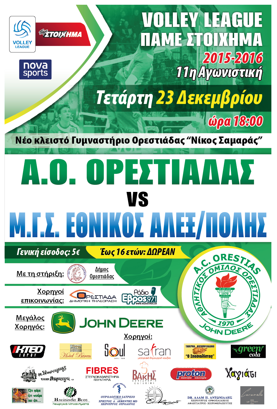 Την ομάδα του Εθνικού Αλεξανδρούπολης θα αντιμετωπίσει στο Νίκος Σαμαράς για το κλείσιμο του πρώτου γύρου της Volleyleague 2015-2016 ο Αθλητικός Όμιλος Ορεστιάδας.