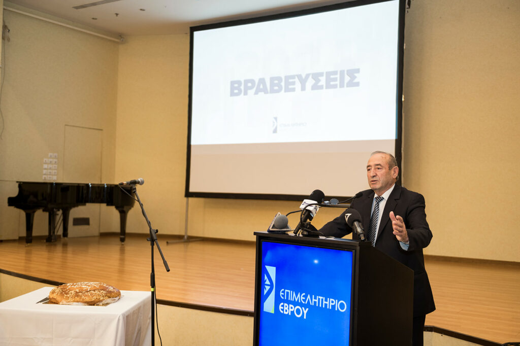 Όπως κάθε χρόνο, έτσι και φέτος, η εκδήλωση περιελάμβανε και μία σειρά βραβεύσεων προς επιχειρήσεις που έχουν διαγράψει αξιοσημείωτη πορεία, αλλά επίσης προσφέρθηκε και ένας απινιδωτής στην Πυροσβεστική Υπηρεσία της Ορεστιάδας κατόπιν ομόφωνης απόφασης του Διοικητικού Συμβουλίου.