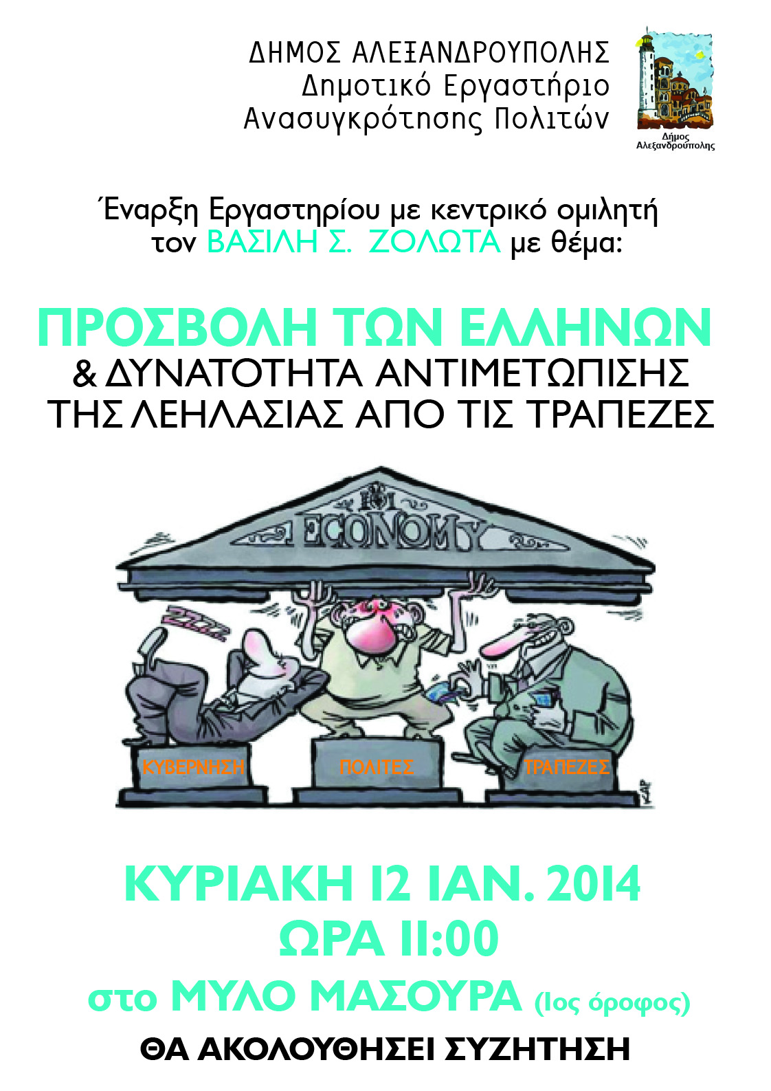 Με ομιλία ξεκινάει του Β.Ζολώτα ξεκινάει το Εργαστήριο Ανασυγκρότησης Πολιτών του Δήμου Αλεξανδρούπολης
