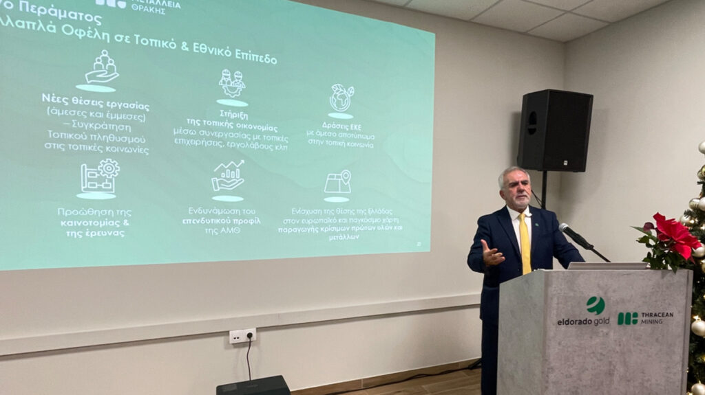 Όπως δήλωσε ο κ. Μπακούρας, «η Μεταλλεία Θράκης και η Eldorado Gold συνεχίζουν να επενδύουν στη Θράκη και στους ανθρώπους της με βάση τους εξής στρατηγικούς πυλώνες:
