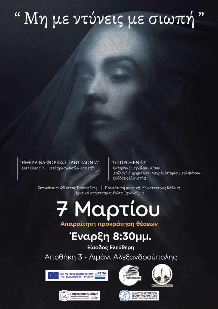 Η εκδήλωση πραγματοποιείται σε συνεργασία με την Επιτροπή Ισότητας Φύλων Δήμου Αλεξανδρούπολης.