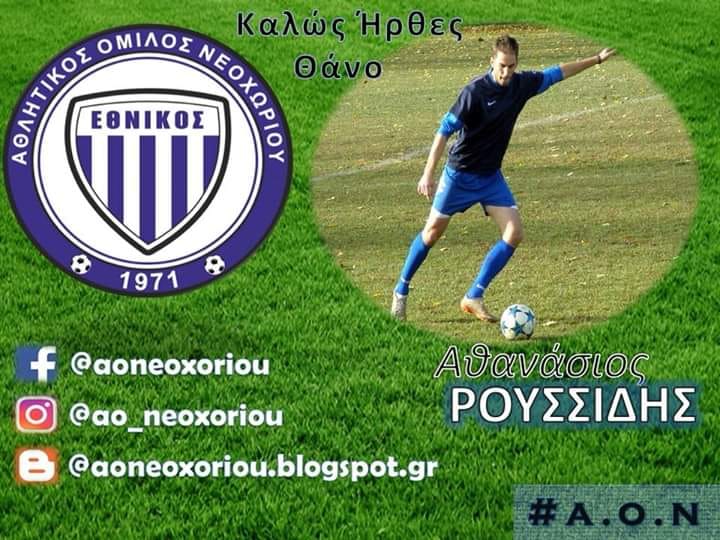 Ο Αθλητικός Όμιλος Νεοχωρίου βρίσκεται στην ευχάριστη θέση να ανακοινώσει την 1η μεταγραφή για την φετινή χρονιά!!Φυσικά δεν χρειάζονται συστάσεις καθότι γνώριμος στο ποδοσφαίρικο κοινό του νομού με πλούσιο βιογραφικό και πολλές επιτυχίες στον ενεργητικό του Αθανάσιος Ρουσσίδης καλωσόρισες σου ευχόμαστε καλή ποδοσφαιρική χρονιά με υγεία και πολλές επιτυχίες!!