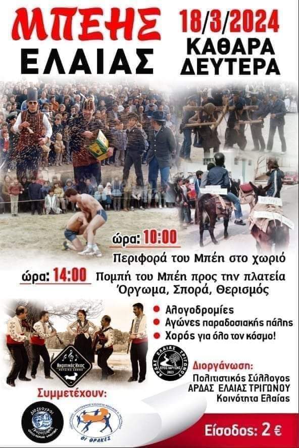 Μετά από πολλά χρόνια ο Μπέης Ελιάς επιστρέφει και αναβιώνει με πλούσιες εκδηλώσεις την Καθαρά Δευτέρα στην Ελιά!