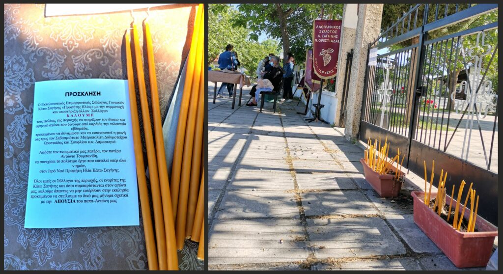 Η Πρόεδρος του Συλλόγου Κ. Σαγήνης εξέφρασε την αγωνία των ενοριτών της περιοχής, εξηγώντας τους λόγους που προχώρησαν σ’ αυτή τη δεύτερη κατά σειρά Κυριακή κινητοποιήσεων, καθώς οι προσπάθειες του Συλλόγου να συναντηθεί με τον κ. Δαμασκηνό απέβησαν μέχρι στιγμής άκαρπες, ενώ ο ίδιος έχει τελικά δρομολογήσει την υλοποίηση της απόφασης. “Ο π. Αντώνης λειτουργεί επί 22 χρόνια στην ενορία μας, δέχτηκε αγάπη και έδωσε πάρα πολλή αγάπη σε όλους. Ελπίζουμε να εισακουστεί η φωνή μας από το Δεσπότη και να επιστρέψει τον π. Αντώνη στην ενορία του. Ευχόμαστε την άλλη Κυριακή ο π. Αντώνιος να είναι εδώ να χτυπήσει την καμπάνα και να λειτουργήσει”, δήλωσε η Πρόεδρος του Συλλόγου Μαρία Τσιντουκίδου.