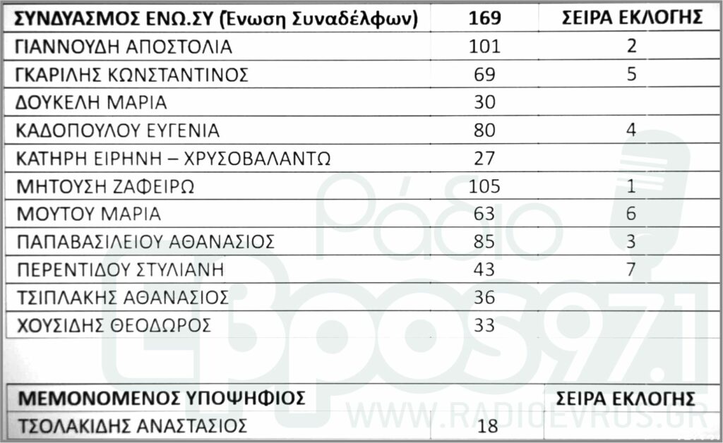 Συγκεκριμένα, σύμφωνα με το ρεπορτάζ του Ράδιο Έβρος, από το σύνολο περίπου 260 υπαλλήλων ψήφισαν 206 και εκλέχθηκαν οι εξής: