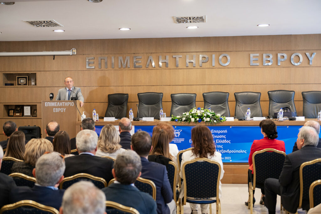 Ο κος Δαστερίδης με τη σειρά του, χαιρετίζοντας συγκινημένος την εκδήλωση, αφού ευχαρίστησε τον πρόεδρο και το Διοικητικό Συμβούλιο του Επιμελητηρίου Έβρου, επανέλαβε την αγωνία του για το μέλλον της περιοχής μας καλώντας όλους και όλες να μην χάνουν την εργατικότητά τους και τη διάθεσή τους για προσφορά, ώστε ο Έβρος και η Θράκη να κινούνται ανοδικά και με προσανατολισμό την ανάπτυξη και την ευημερία.