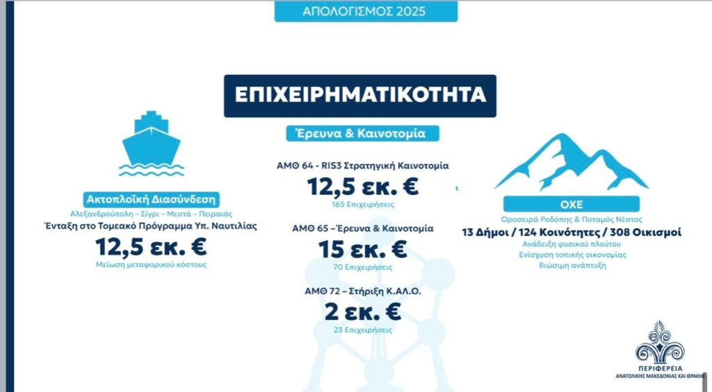 Απολογισμός πεπραγμένων της Διοίκησης της Περιφέρειας Ανατ. Μακεδονίας- Θράκης Έτους 2025