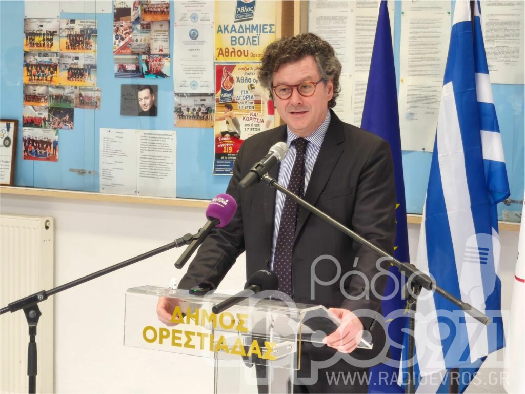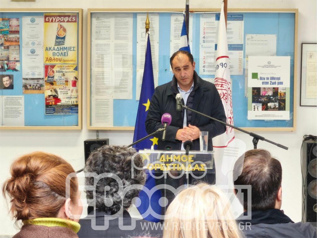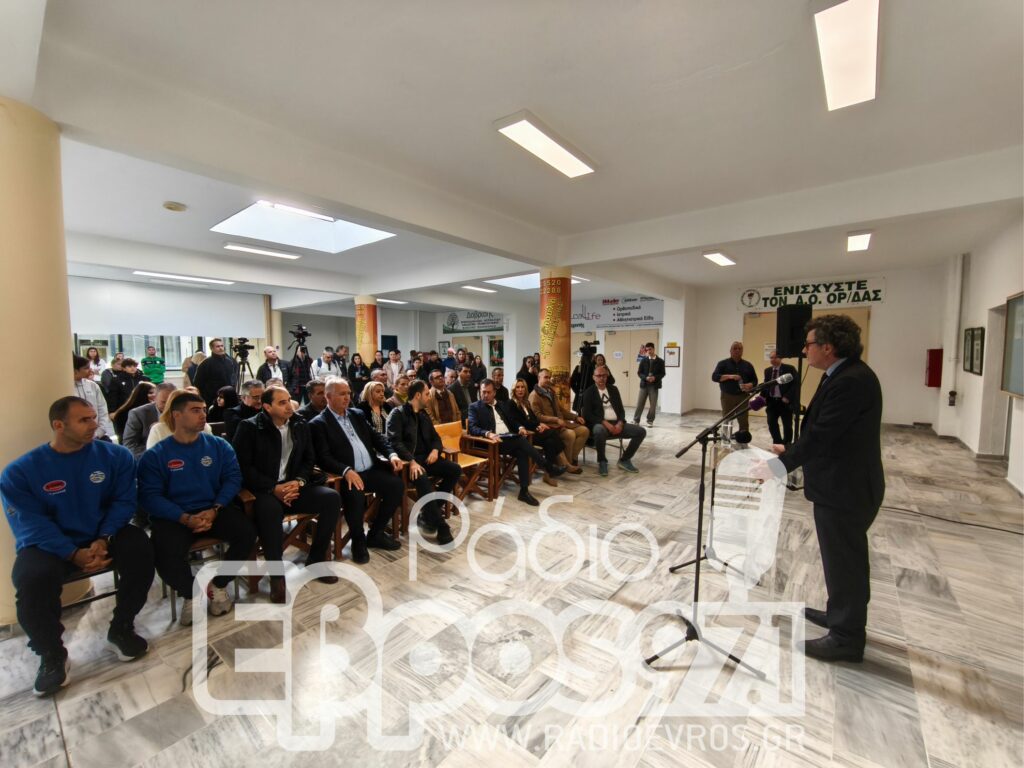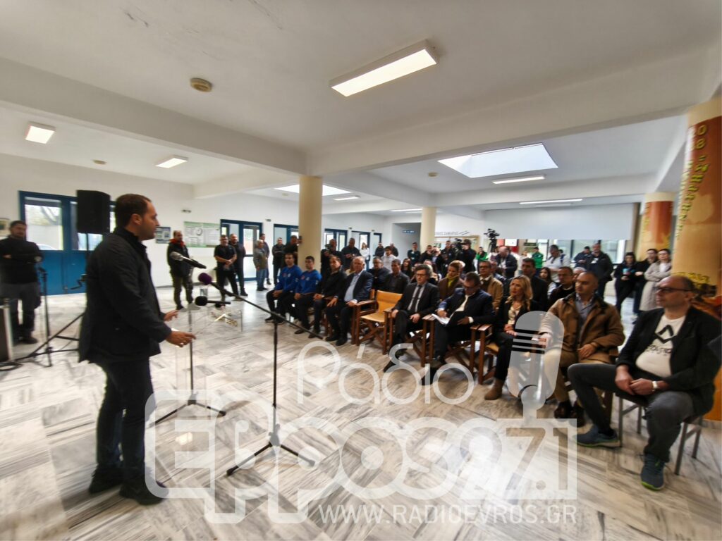 Κεντρικός ομιλητής της εκδήλωσης ήταν ο αναπληρωτής υπουργός Αθλητισμού, Γιάννης Βρούτσης, ο οποίος επιβεβαίωσε πως η χρηματοδότηση για την αποκατάσταση της στέγης έχει ήδη κατατεθεί στον Δήμο Ορεστιάδας. Όπως επανέλαβε, αυτή αποτελεί πάγια πρακτική του: «Καμία ανακοίνωση για έργο, αν πρώτα δεν έχουν εξασφαλιστεί οι πόροι».