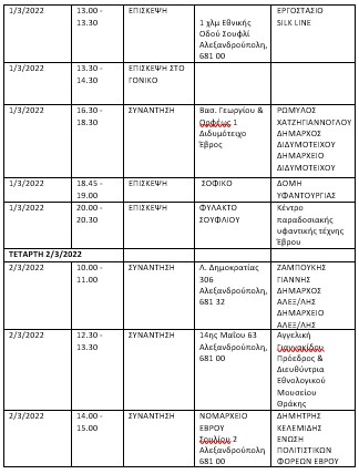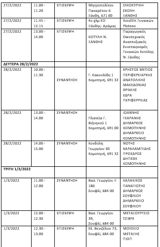 Ο κ. Γιατρομανωλάκης θα πραγματοποιήσει επισκέψεις και στους τρεις νομούς της Θράκης (στον Έβρο θα βρεθεί την Τρίτη 1 και την Τετάρτη 2 Μαρτίου) ενώ είναι από τις λίγες περιπτώσεις όπου πολιτικός πραγματοποιεί επισκέψεις στην περιοχή της Θράκης για πέντε ολόκληρες ημέρες.