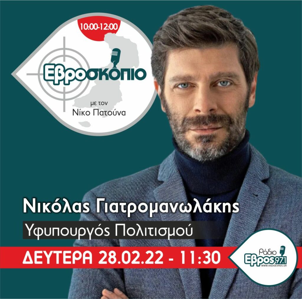 >> Ο υφυπουργός στο Ράδιο Έβρος τη Δευτέρα στις 11:30, καλεσμένος στο Εβροσκόπιο.