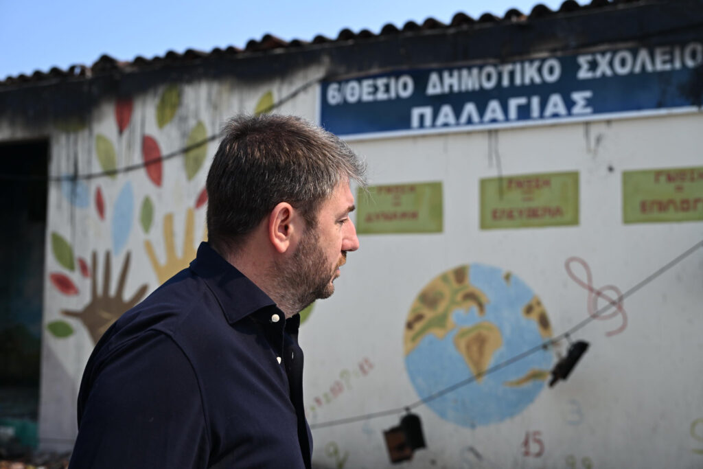Ο Νίκος Ανδρουλάκης επισκέφθηκε το Αετοχώρι, όπου έχουν καταγραφεί ζημιές σε σπίτια, και ακολούθως την Παλαγία όπου η φωτιά έκαψε το σχολείο.
